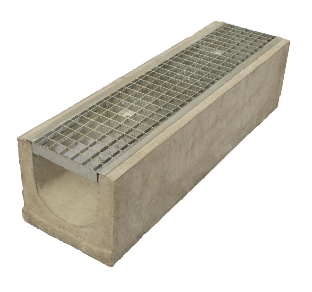 Лоток водоотводный бетонный Standart с решеткой ячеистой сталь оцинкованной (1000x230x190) подходит для городской инфраструктуры, загородного строительства, тепличных и фермерских хозяйств.