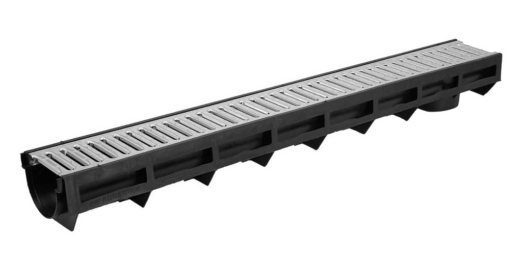 Водоотводный лоток пластиковый дренажный с решеткой штампованной оцинкованной (1000x145x185)