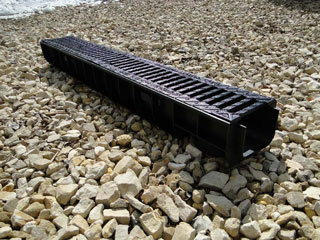 Водоотводный лоток пластиковый дренажный с решеткой чугунной (1000x145x80)