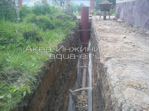 2. Дренажная труба закладывается ниже уровня фундамента на 15-20 см.