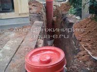 5. Подготовка отверстия в колодце для установки муфты для входа трубы в колодец.